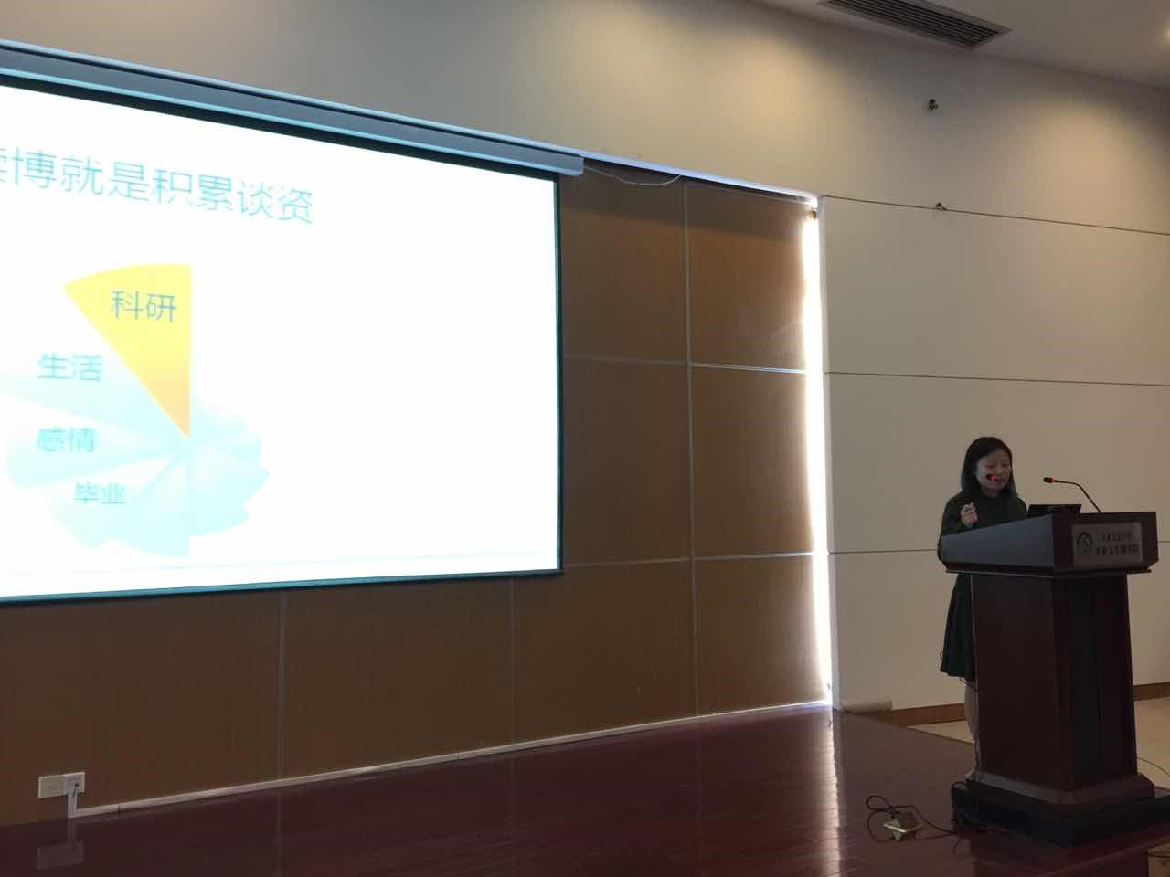 首先,金老师致欢迎辞,她代表院里向我们班级举办的活动表示感谢,同时也欢迎四位优秀的博士生能抽出时间和大家交流,并鼓励我们要多举办类似的学术活动。