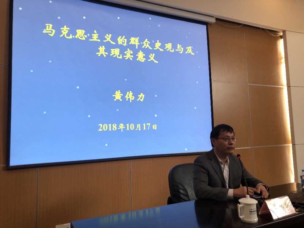 黄伟力教授以“中国共产党人为什么要重温马克思主义的群众史观”这一问题展开讲解,他从党的建设内在要求、马克思主义理论体系以及十八大以来中国共产党突出强调马克思主义的群众路线和人民立场等三个方面进行解析。他表示重温马克思主义的群众史观,是中国共产党人塑造理想信念的需要,是中国共产党保持和巩固自身执政地位的需要,也是认识和解决党内外面临的一系列重大现实问题的需要。坚持和贯穿“以人民为中心”的理念,是马克思主义群众史观的必然要求,这不单是一个理论问题,更是一个实践问题。对执政党而言,关系其执政基础和执政地位;对一级党组织而言,则关系它在群众中口碑和威信。只有把群众放在心里,多为群众谋福利,才能成就事业、成全自己。