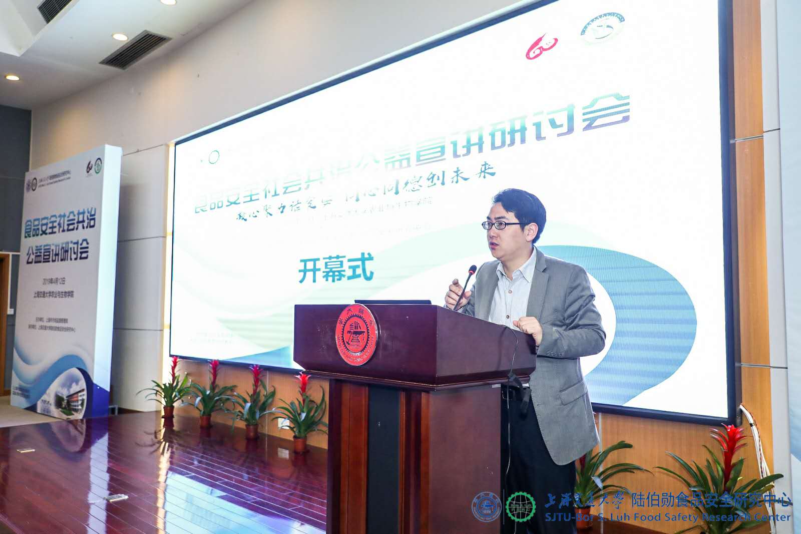为了交流食品安全社会共建、共治、共享工作方法与成果, 2019年4月12日,由上海市市场监督管理局主办、上海交通大学陆伯勋食品安全研究中心承办的“食品安全社会共治公益宣讲研讨会”于交大顺利召开,本次大会是《上海市食品安全条例》实施2周年系列活动之一。两百余位来自食品监管部门、行业协会、学术机构、企业、公益机构、互联网平台、媒体的专家学者及管理者出席了本次活动。会议分别由上海交大农业与生物学院党委副书记龚强、上海交大陆伯勋食品安全研究中心副主任岳进主持。