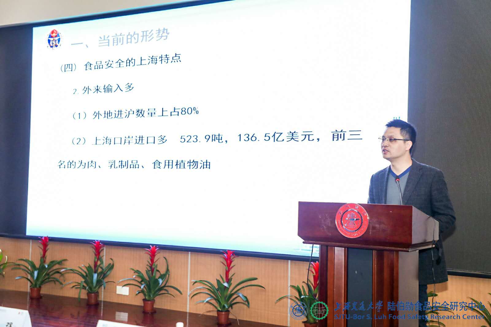 接下来,上海海关食品处副处长王震宇就新形势下进口食品安全监管进行了分享,分享了贸易全球化、区域一体化发展使得食品供应链从本地化为主向全球化方向发展的客观情况与当前形势下的应对措施。