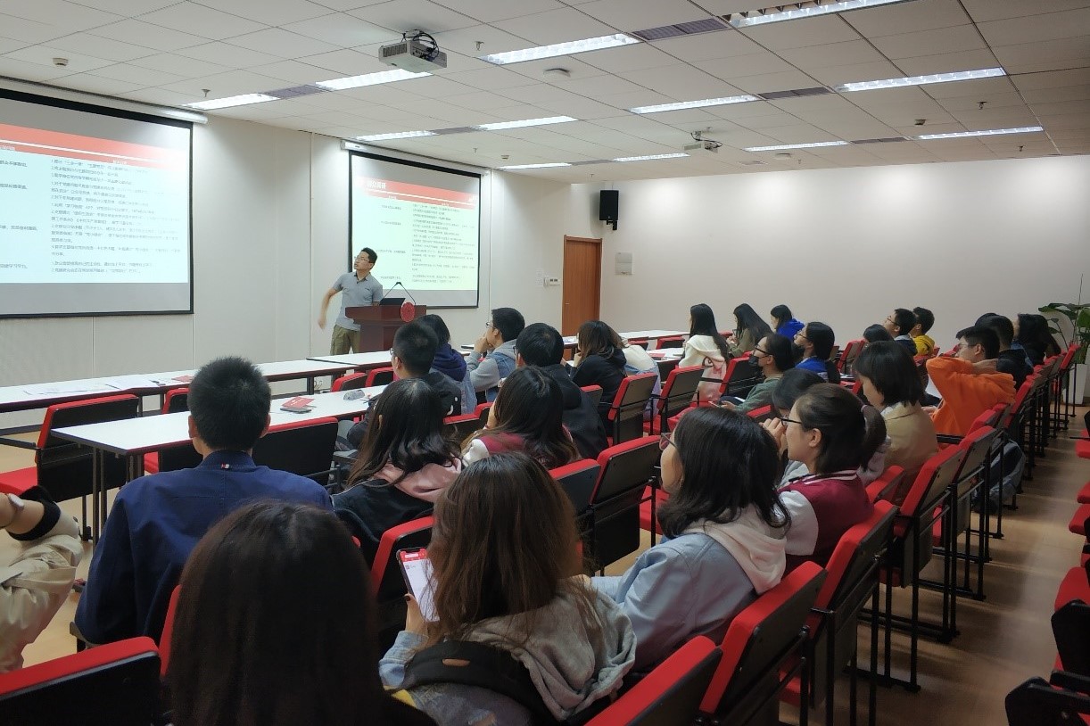 会议伊始,支部书记王利康对新一届支部委员及工作职责进行了简单介绍。紧接着,金梦圆副书记带领全体党员同志从十九届四中全会提出的重大战略任务、总体目标以及我国国家制度和治理体系的显著优势上等方面进行了深度地解读。并通过短评视频“如何准确领会十九届四中全会精神”具体地向全体同志传达了我国的国情现状和十九届四中全会精神要旨。