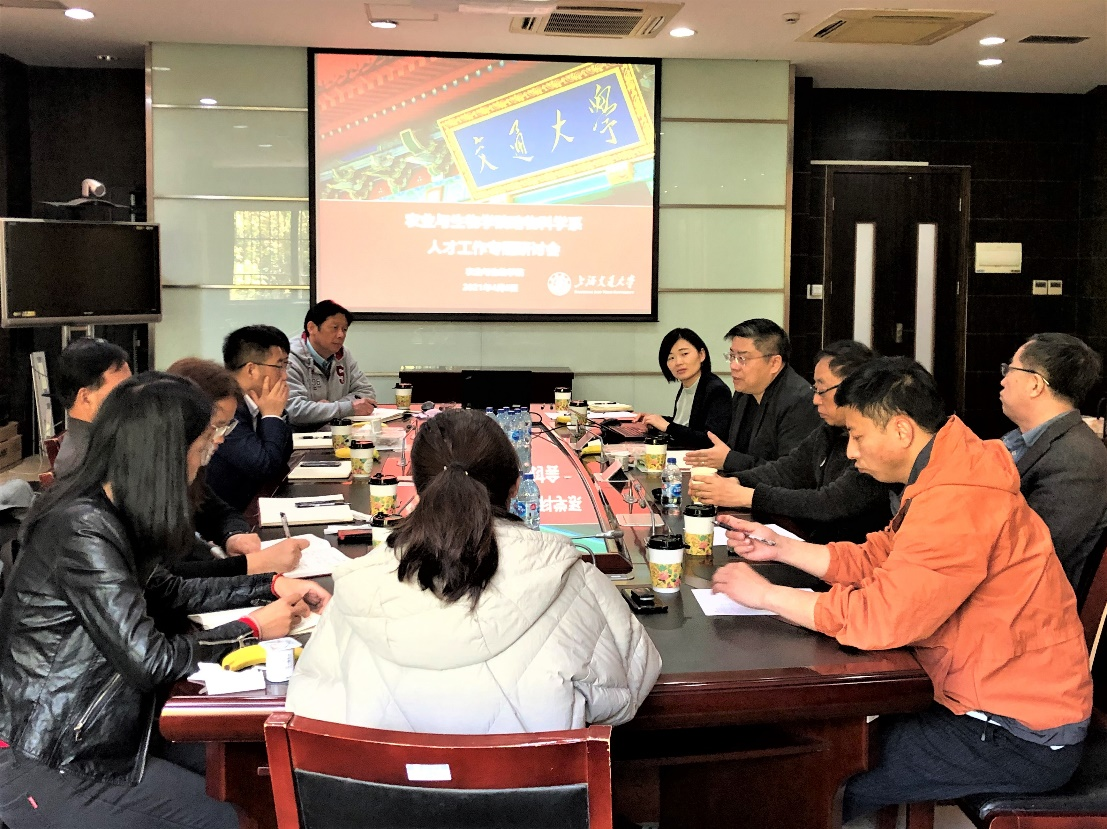 4月6日,农业与生物学院在农生A楼0-102室召开动物科学系人才引进及学科发展专题研讨会。院长薛红卫,动物科学系系主任孙建和,动物科学系党支部书记杨志彪,党政办主任卜军敏及部分PI团队长参加会议。会议由薛红卫主持。