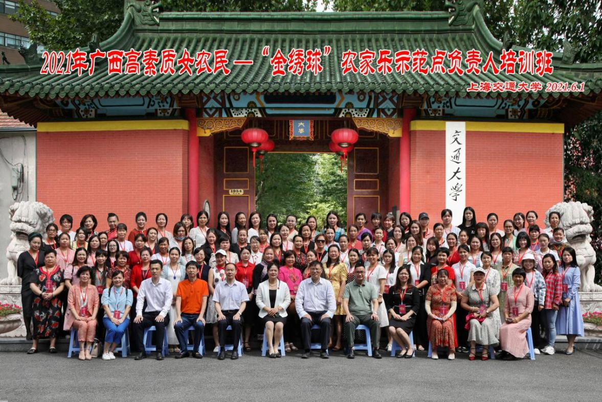 由广西壮族自治区妇女联合会和广西壮族自治区农业农村厅共同主办,由上海交通大学与农业与生物学院承办的“2021年广西高素质女农民——‘金绣球’农家乐示范点负责人培训班”于5月31日至6月5日在上海交通大学七宝校区开班。来自广西壮族自治区的100名“金绣球”农家乐示范点负责人参加培训学习。广西壮族自治区妇联副主席孔献玲,广西壮族自治区妇联妇女发展部部长覃英奎,广西壮族自治区农业农村厅科教处副处长奉小兵,中共上海交通大学农业与生物学院党委书记周培出席开班典礼。