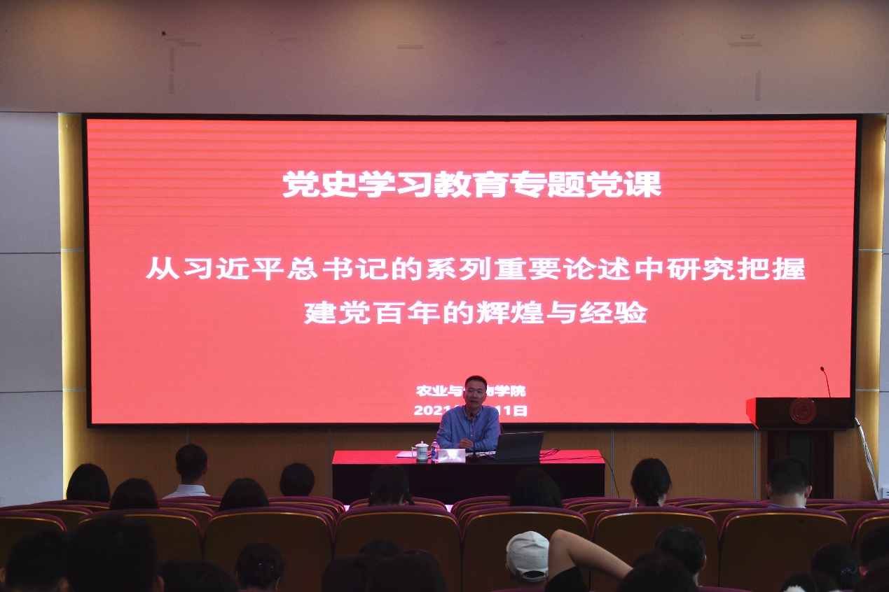 陈老师的授课深入浅出、旁征博引,大道理结合小故事,给农生学院师生党员带来了一堂生动的党史学习教育专题党课。与会党员反响热烈,深受教益,纷纷表示,要以此次党课为契机,扎实开展党史学习教育,做到学以致用,切实把学习成效转化为工作动力,以饱满的工作热情、务实的工作作风、优异的工作成绩向建党100周年献礼。