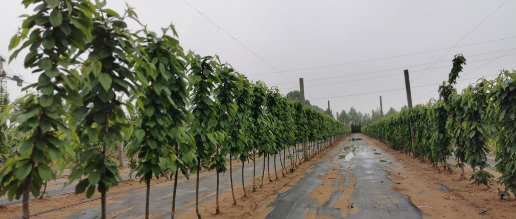甜樱桃生产是劳动密集型产业,我国劳动力老龄化日趋加剧,甜樱桃栽培机械化水平低。张才喜教授团队建立了适应不同生态条件的现代化果园和配套轻简化栽培技术。与会领导、专家和推广单位代表等对张才喜教授指导的山东冠绿农业科技有限公司甜樱桃省力化栽培基地进行了现场考察。该基地引进了有利于果园机械化管理的“UFO”和“SSA”整形修剪技术,使用了张才喜教授团队研发的“发枝灵”产品,解决了甜樱桃整形修剪中“发枝难”、“新梢不齐”、“发枝部位不均衡”等难题,实现定点发芽抽枝,完善了轻简化栽培技术体系,获得专家一致认可。