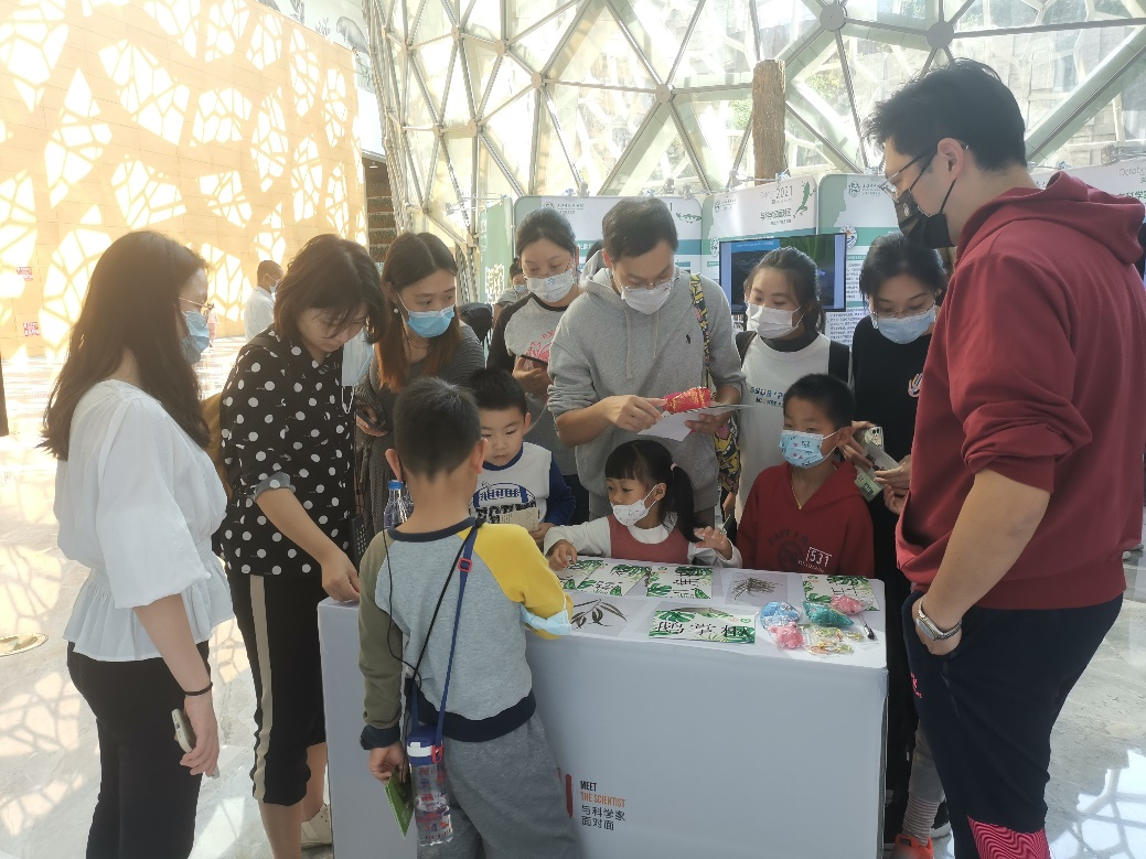 签约活动当天,上海交通大学殷杉研究组、赵琦研究组受邀参加了由上海自然博物馆举办的全球生物多样性保护主题月专项活动——“与科学家面对面”科学集市。活动中,殷杉研究组成员向入馆公众展示了12种上海市区城市森林中典型的植物叶片,介绍了植物叶片的形态特征及生长习性,设计了植物配对名称卡片的互动小游戏,并为参与者准备了精美礼品。赵琦课题组成员向入馆公众介绍了蚯蚓作为伟大的“地下工作者”为生态环境以及人类生活做出的巨大贡献,通过对蚯蚓解剖的展示,向公众介绍了蚯蚓不同器官的功能。