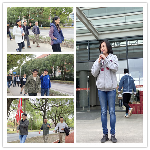 全院近200名教职工参与了此次活动。中午12时30分,活动准时开始,学院党委副书记、工会主席陈菡作了简短的动员讲话,随后,一声令下,健步走活动正式开始。老师们跟随院旗,沿健步道昂首阔步。
