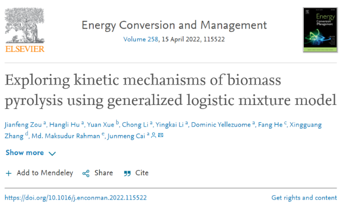 Energy Conversion and Management—生物质热化学转化工作室利用广义Logistic混合模型解析生物质热解动力学机理