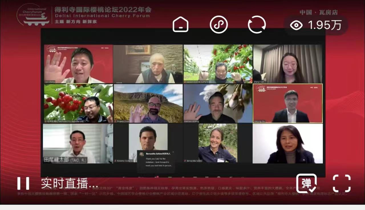 2022年11月5日,以“新方向·新探索”为主题的得利寺国际樱桃论坛2022年会在大连瓦房店市成功举办。国际樱桃论坛由国家桃产业技术体系和上海交通大学农业与生物学院主办,辽宁省农科院、瓦房店市委、瓦房店市人民政府协办。论坛旨在加强国际间樱桃产业的交流与合作研究,探索全球樱桃产业未来发展方向,普及全球先进的樱桃栽培技术,为全国樱桃产业未来发展方向和打造樱桃产业全链条技术革新提供参考,进一步提升我国樱桃产业发展的影响力和竞争力。