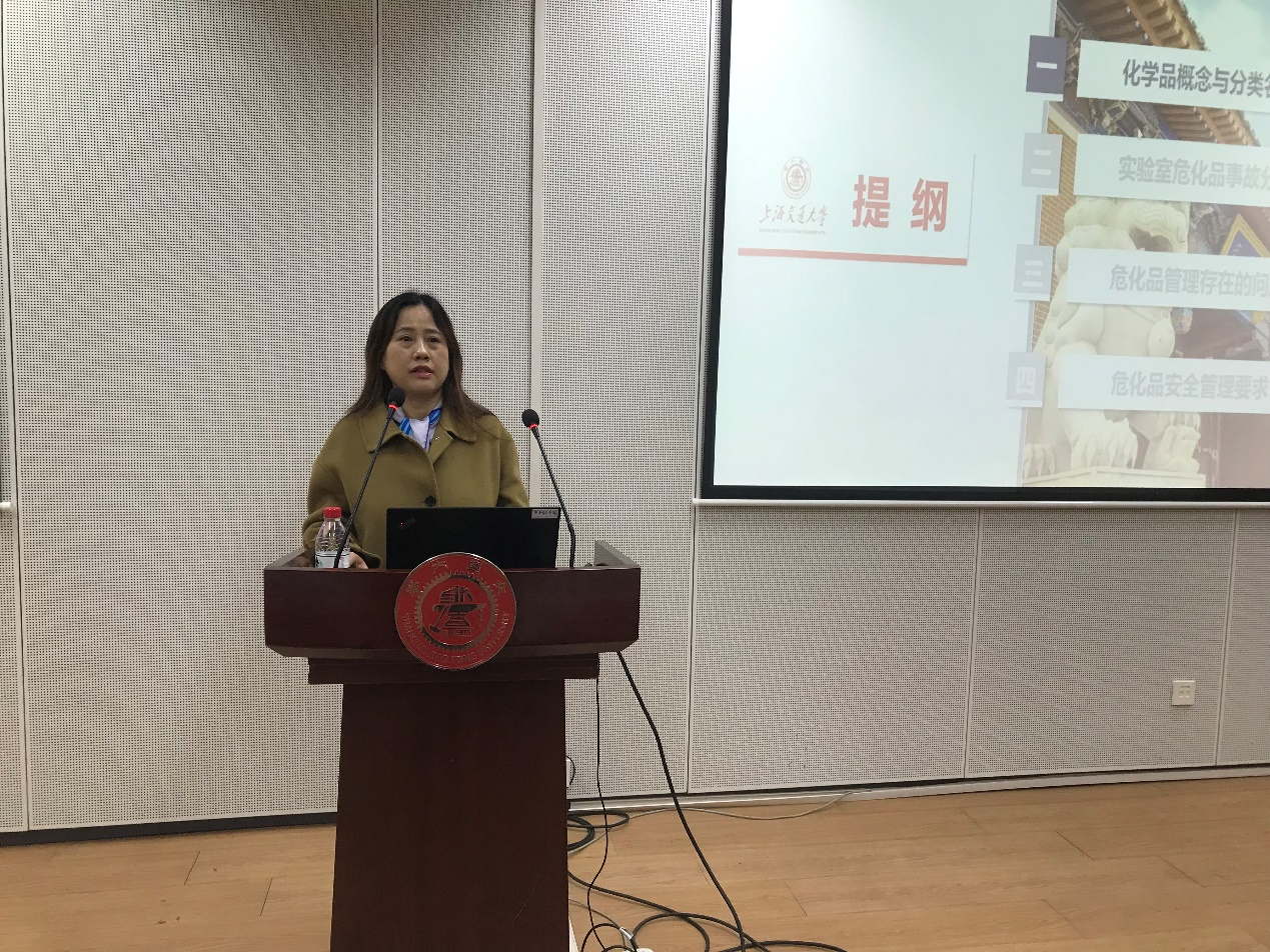 为落实本学期学院月度安全专题培训工作计划,进一步提升学院实验室安全管理人员的管理水平和安全意识,3月17日下午,学校实验室安全与环保中心技术安全办主任丁珍菊老师受邀做《危险化学品安全管理培训专题》(第二期)专题讲座。学院各实验室安全员和研究生参加培训,培训由公共仪器与资产管理平台主任刘娇月主持。
