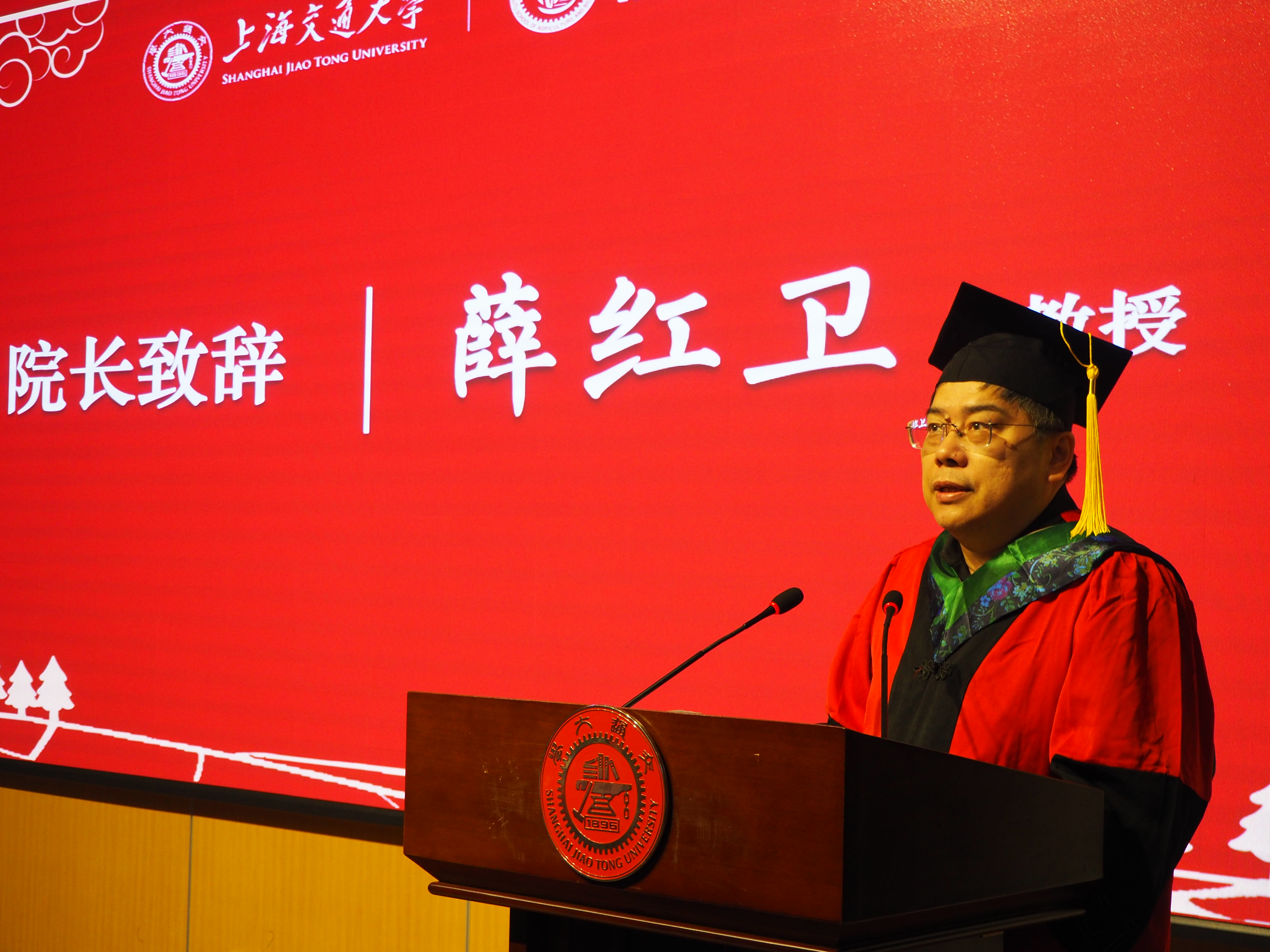 典礼在庄严的国歌中拉开序幕。薛红卫在致辞中向2023届毕业生致以热烈的祝贺,他向各位毕业学子们提出三点期望,希望大家能明德励志,心怀“国之大者”,脚踏实地,牢记“行之实者”,“求知笃行,不忘“心之所向”,成为各行各业的实干家。