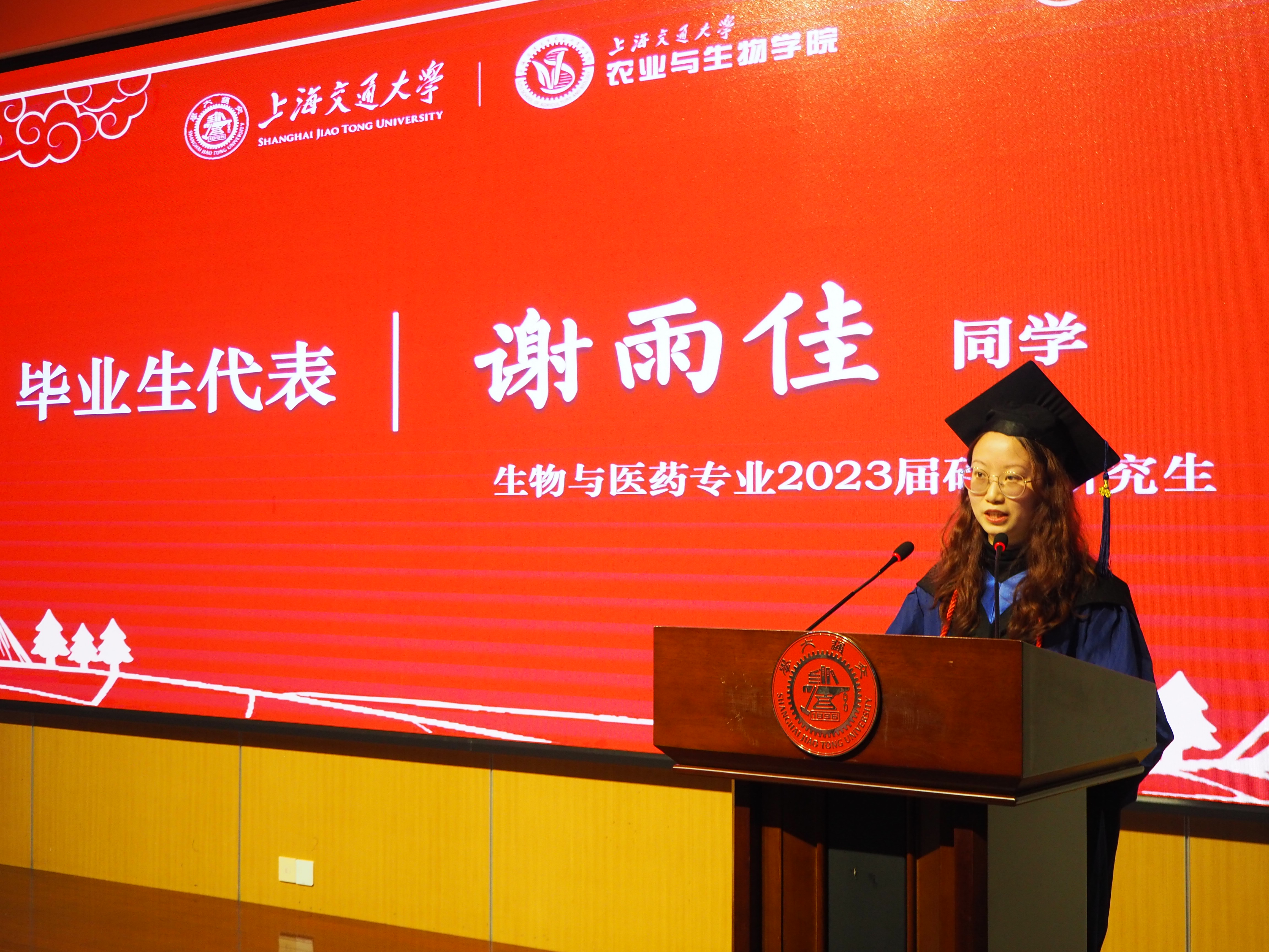 2023年3月22日下午,上海交通大学农业与生物学院2023届研究生毕业典礼暨学位授予仪式在农生院A楼报告厅隆重举行。