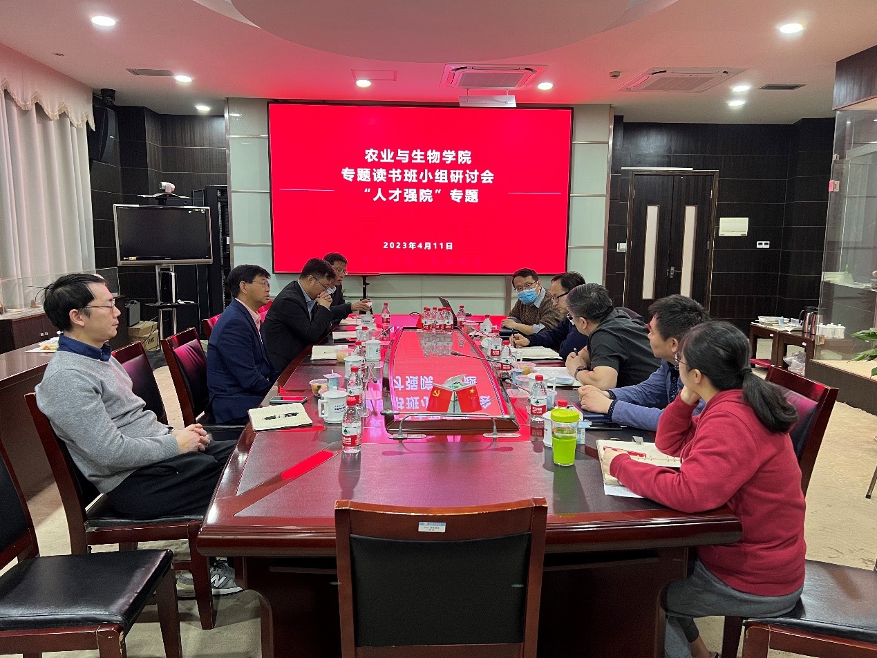 4月11日,农生学院在A楼0-102会议室召开“学习贯彻党的二十大精神,推动学校事业高质量发展”专题读书班“人才强院”专题研讨会,学校人力资源处副处长宋续明、学院党委书记侯士兵、院长薛红卫等读书班全体成员参会。会议由侯士兵主持。