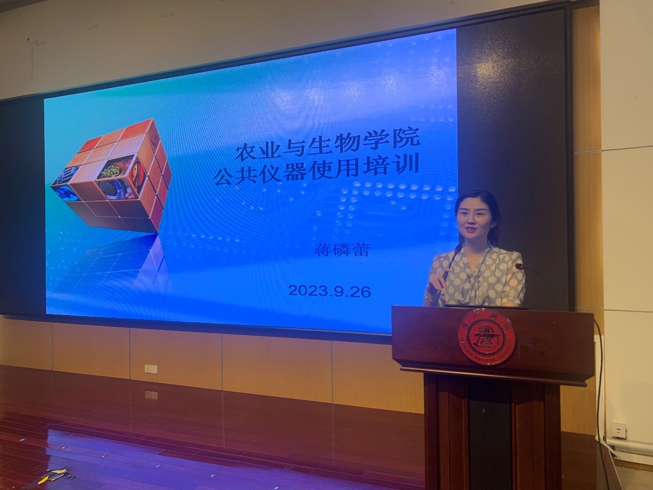 为了让新生及时了解和掌握公共仪器的预约和使用流程,公共仪器与资产管理平台于9月26日下午在学院报告厅为全体新生组织召开了“公共仪器使用培训会”。蒋磷蕾老师为新生作了题为《农业与生物学院公共仪器使用培训》的专题讲座。200余名2023级本科生和研究生参加了培训,培训会由公共仪器平台主任刘娇月主持。