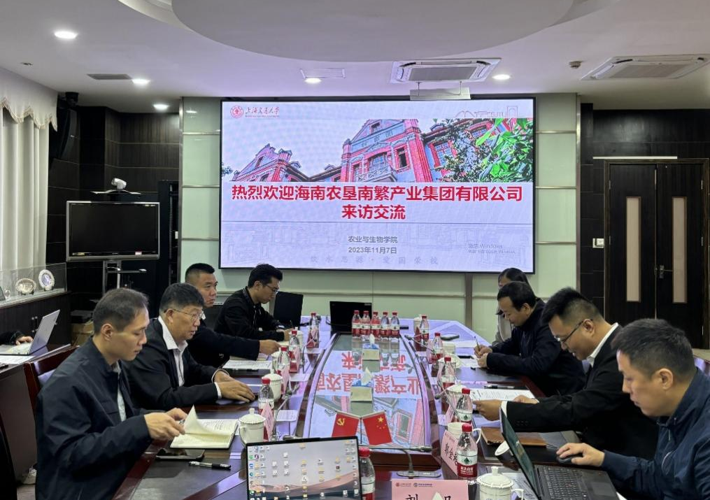 11月7日上午,海南农垦南繁产业集团有限公司党委书记、董事长李智全一行四人到访农业与生物学院调研交流。上海市农业农村委员会科技教育处二级调研员田吉林、上海交通大学农业与生物学院党委书记侯士兵、副院长方亚鹏、校科学技术发展研究院计划项目办主任郭金超、学院教师代表以及学科与科技办人员参加了此次会议。会议由方亚鹏主持。