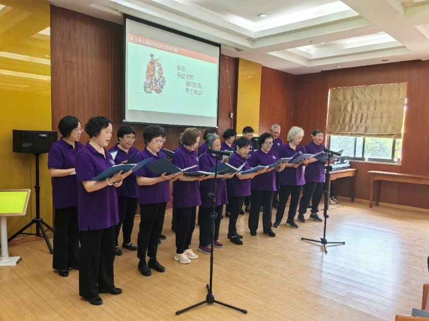 学院退休合唱兴趣小组在祝寿会合唱《祝你生日快乐》、《浪漫夕阳》,舞蹈兴趣小组表演了舞蹈《杏花落》等,他们用优美的歌声和舞蹈表达了对寿星们的美好祝愿,为寿星们送上最真挚的生日祝福!