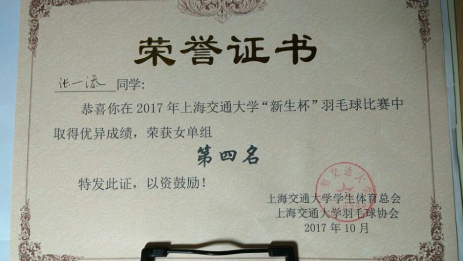 在混双方面,农生羽毛球队队员贝兰心、陈宇翔一路过关斩将拿下冠军,也为农生拿下第三个新生杯冠军。另外,参加女单决赛的张一添同学所在比赛中不幸受伤,但她顽强拼搏,拿到了第四名的好成绩。