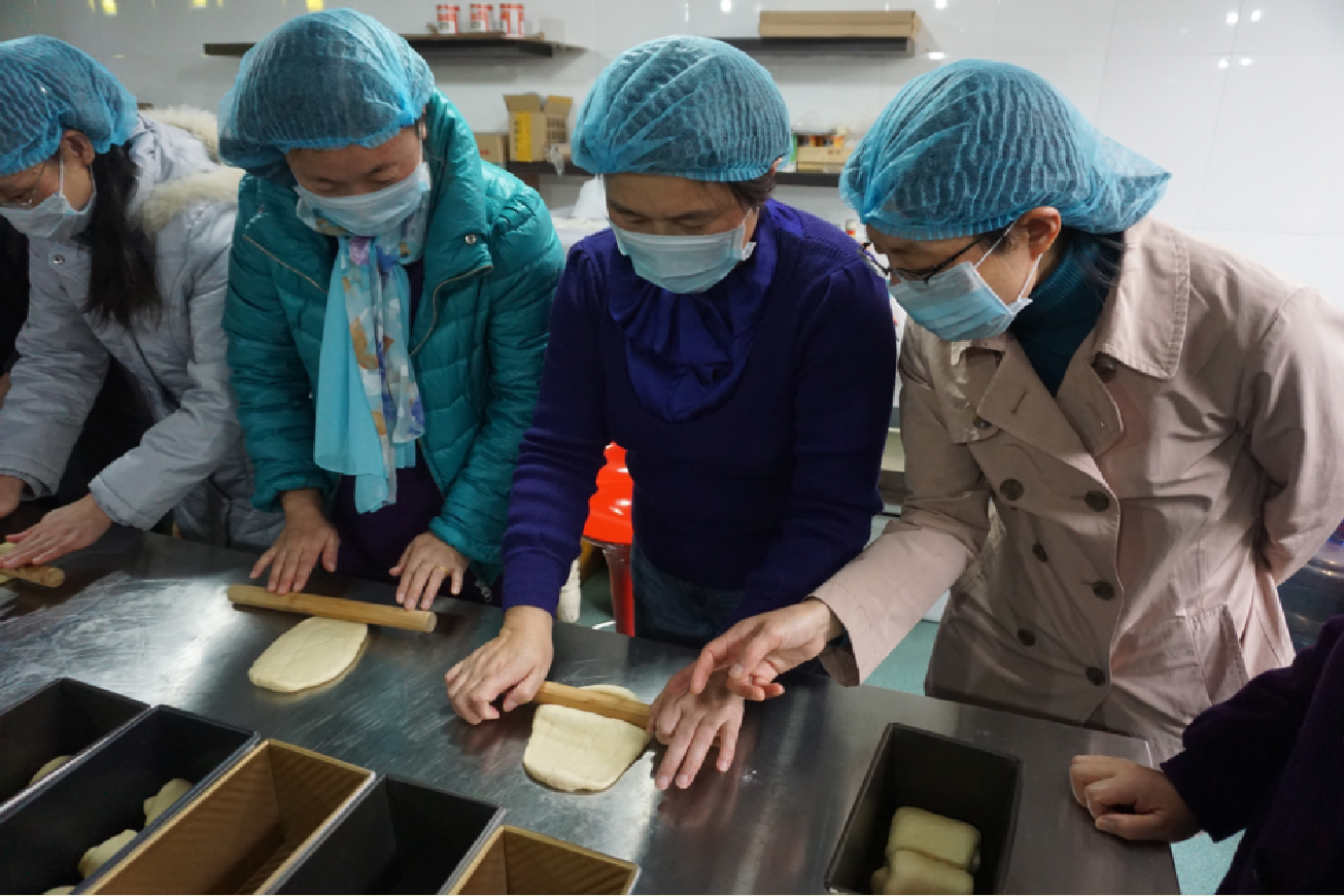 由于近年来食品安全问题十分突出,添加剂泛滥,随着人们越来越关注健康,DIY烘焙之路成为了越来越多人的选择。此次活动基于农生学院食品科学与工程系的专业特长,充分利用中央厨房实验室的功能条件,首次开展了教工DIY体验式活动。在主讲教师简单讲解制作步骤之后,教职工们跃跃欲试,没过一会就开始大显身手了,气氛变得活跃起来。在大家的齐心协力之下,最终出色地完成了三个产品的制作:吐司面包、黄油曲奇、戚风类蛋糕。经过烤箱烘烤后,香喷喷的曲奇饼干、蛋糕和面包纷纷出炉了。