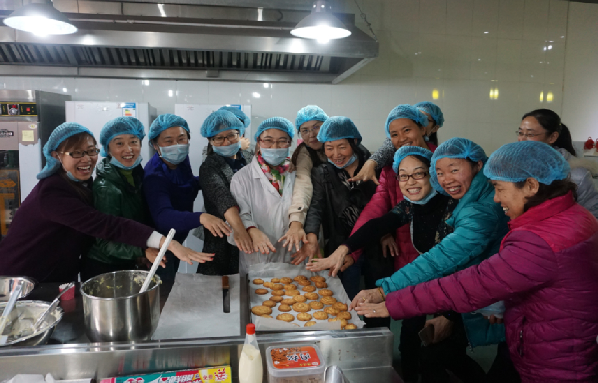 中央厨房里到处是欢声笑语,在紧张的工作之余,大家聚在这里制作美味的糕点,真是一件乐趣无比的事,尤其在等待糕点新鲜出炉的那一刻大家都不约而同地感受了小时候过年的气氛,欢乐而又祥和……