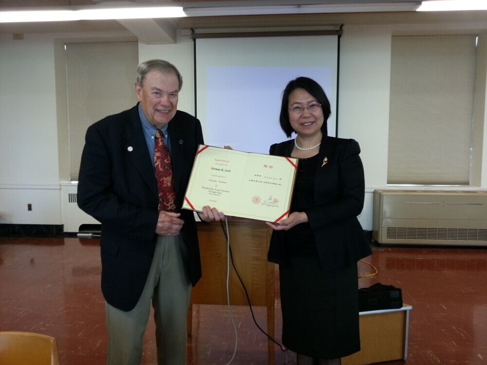 康奈尔大学荣誉退休教授、前副校长、美国工程院院士Norman Scott教授以其在生物质能工程领域的杰出学术地位和长期为交大和康奈尔大学的合作办学做出的巨大贡献,被上海交大聘为“名誉教授”。研讨会上,农业与生物学院党委书记齐红为Norman教授颁发了荣誉证书。