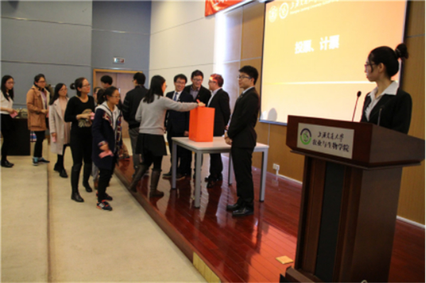 农业与生物学院第十五届研究生主席团竞选随后举行。7名候选人分别做了精彩而生动的演讲,并现场回答了代表的提问。大会在监票人的公证下进行了无记名投票。最终,高艳华、缪斯、江永利、何思宇当选为新一届研究生会的主席团成员。