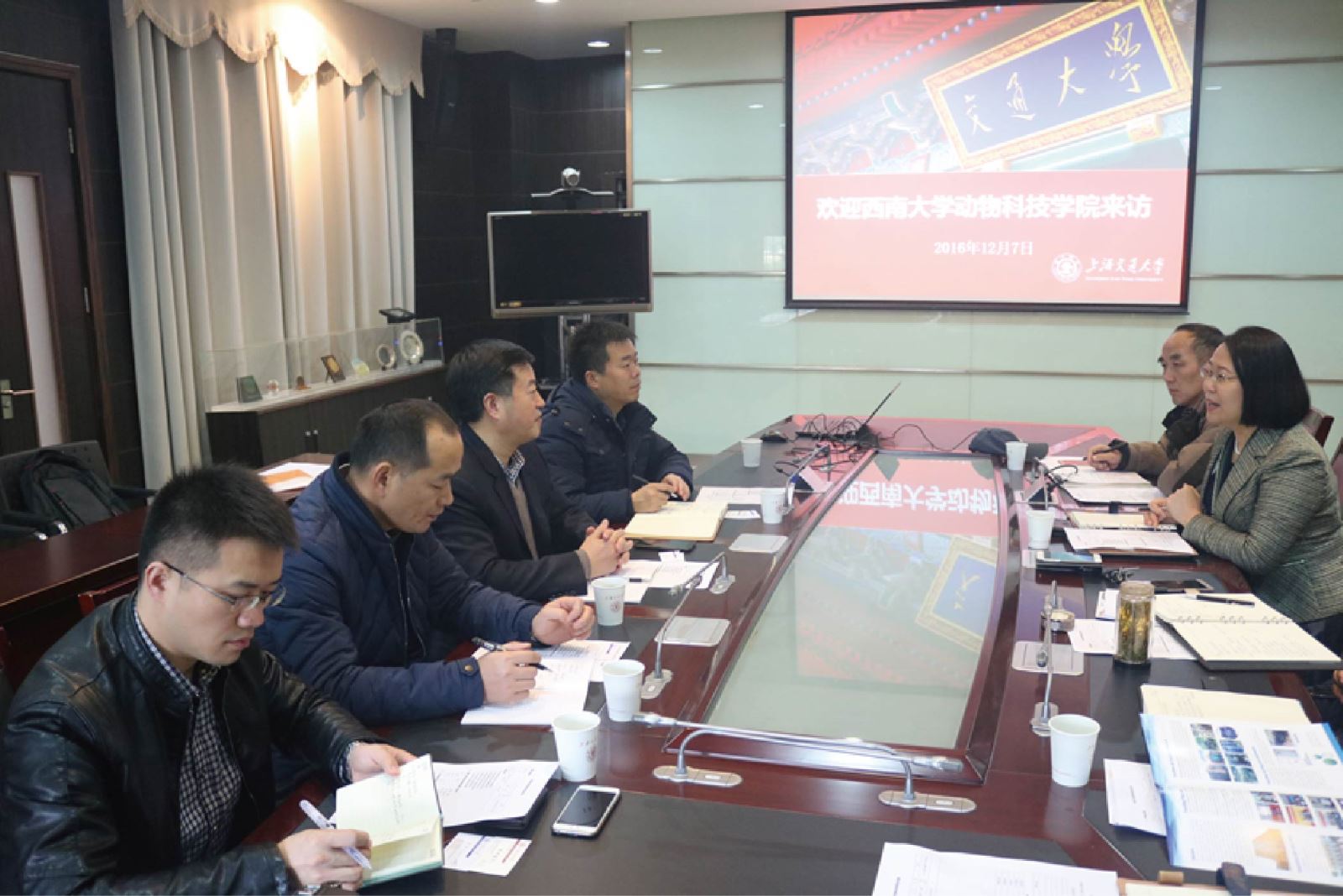 2016年12月7日,西南大学动物科技学院党委书记王豪举、副院长赵永聚、系主任吴正理等一行前来我院考察访问。院党委书记齐红、副书记龚强、副院长陈功友、动科系主任孟和、培养办主任陆小毛参加了交流活动。