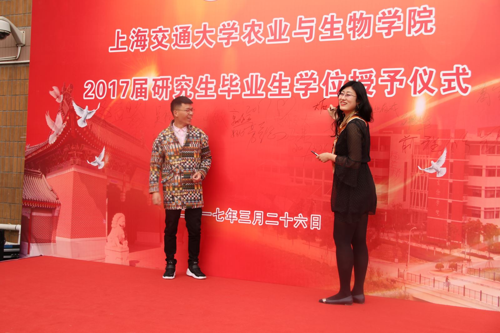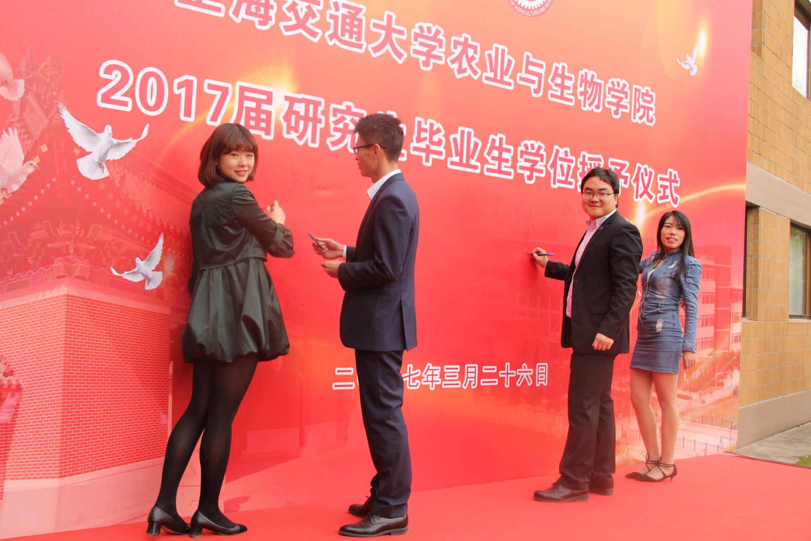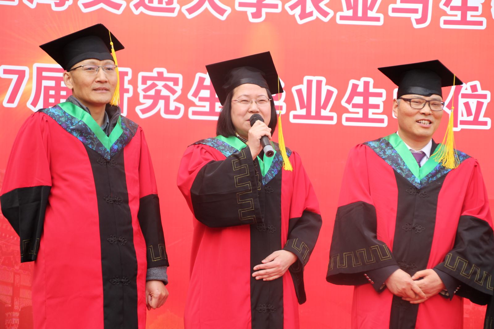 3月26日下午,农业与生物学院学院2017届研究生学位授予仪式暨欢送晚宴在闵行校区学术活动中心举行。农生学院院长周培,党委书记齐红,副书记谢立平、龚强,副院长车生泉、刘志诚,动物科学技术系孟和教授,人才培养办公室老师及全体2017届毕业生参加了此次活动,他们一起共进晚餐,共叙师生情谊。学位授予仪式由龚强主持。