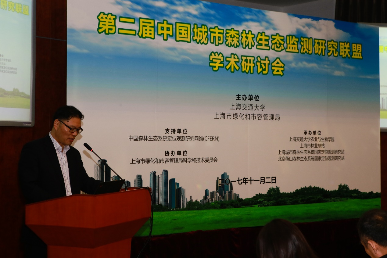 为总结特大型城市森林生态建设发展经验,促进城市森林建设理论和技术协同创新,提升城市森林生态和社会服务功能,在中国森林生态系统定位观测研究网络(CFERN)支持下,由上海交通大学和上海市绿化和市容管理局共同主办的第二届“中国城市森林生态监测研究联盟学术研讨会”于2017年11月1日至3日在上海交通大学举行。来自全国10余个单位的50余名森林生态定位观测方面的科技工作者参加了大会。上海市绿化和市容管理局科信处戴咏梅副处长、上海市林业总站高翔伟站长、潘士华副站长、上海交通大学农业与生物学院周培院长、陈功友副院长等出席会议。