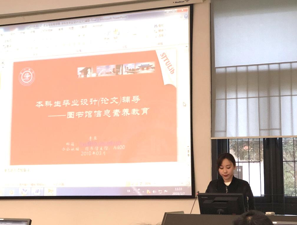 李亚老师仔细为同学们讲解了学校对于毕业设计论文的若干规定及撰写规范;并介绍了学校图书馆网站中的代表性数据库:中国知网及Web of Science,结合具体实例展示了利用检索式等方法在数据库中查阅文献的操作步骤;之后李老师简单说明了信息伦理的相关问题,并对于论文投稿、文献引用涉及到的道德问题进行了解释。