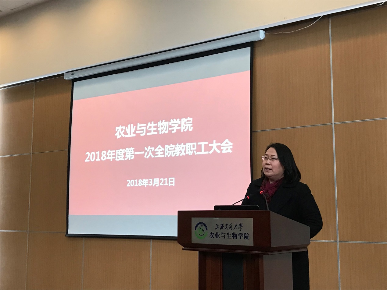 3月21日下午,农业与生物学院2018年度第一次全院教职工大会在报告厅召开,会议由党委书记齐红主持。