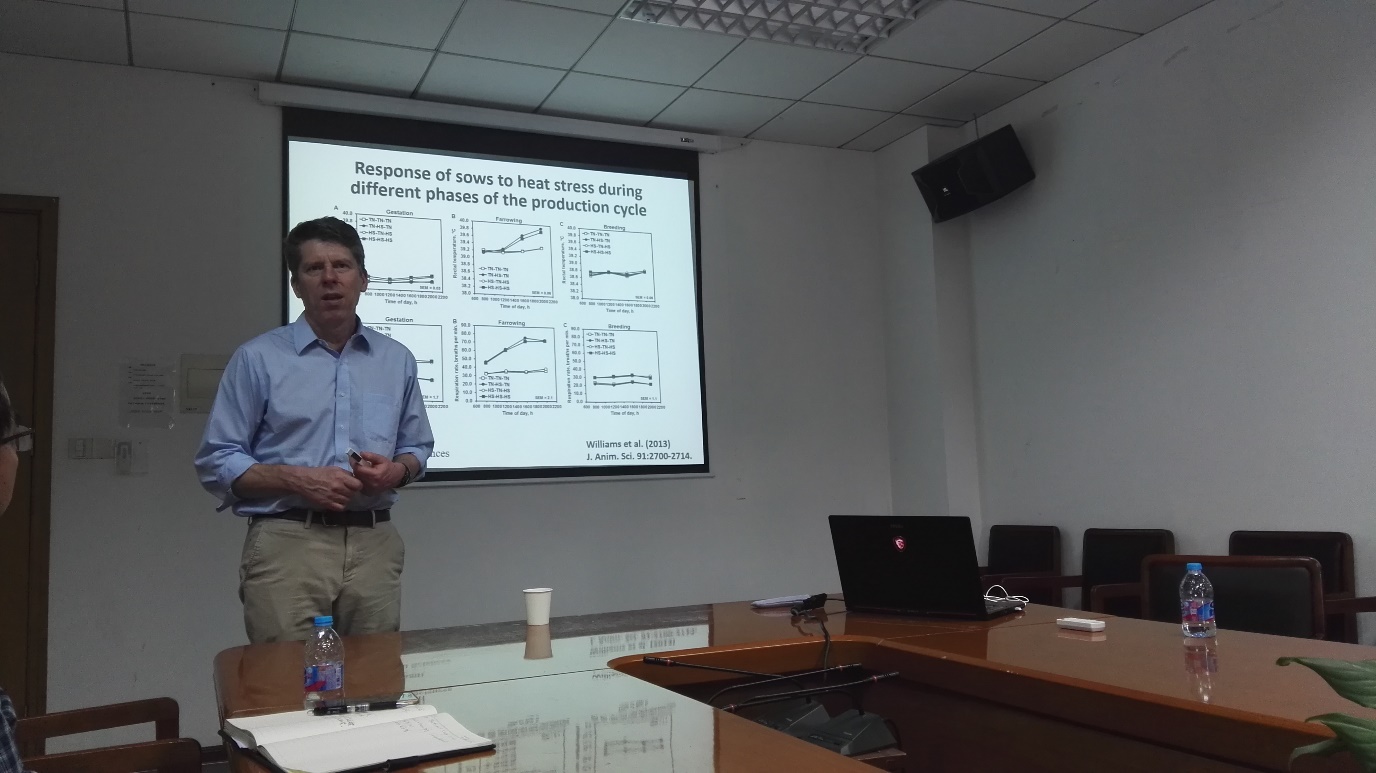 应动物科学系孟和教授团队邀请,2018年3月30日下午,著名动物生理学家美国密苏里大学哥伦比亚分校Matthew C. Lucy教授做了主题为“Heat stress in pregnant sows: thermal responses and subsequent performance of sow and offspring”的学术报告。