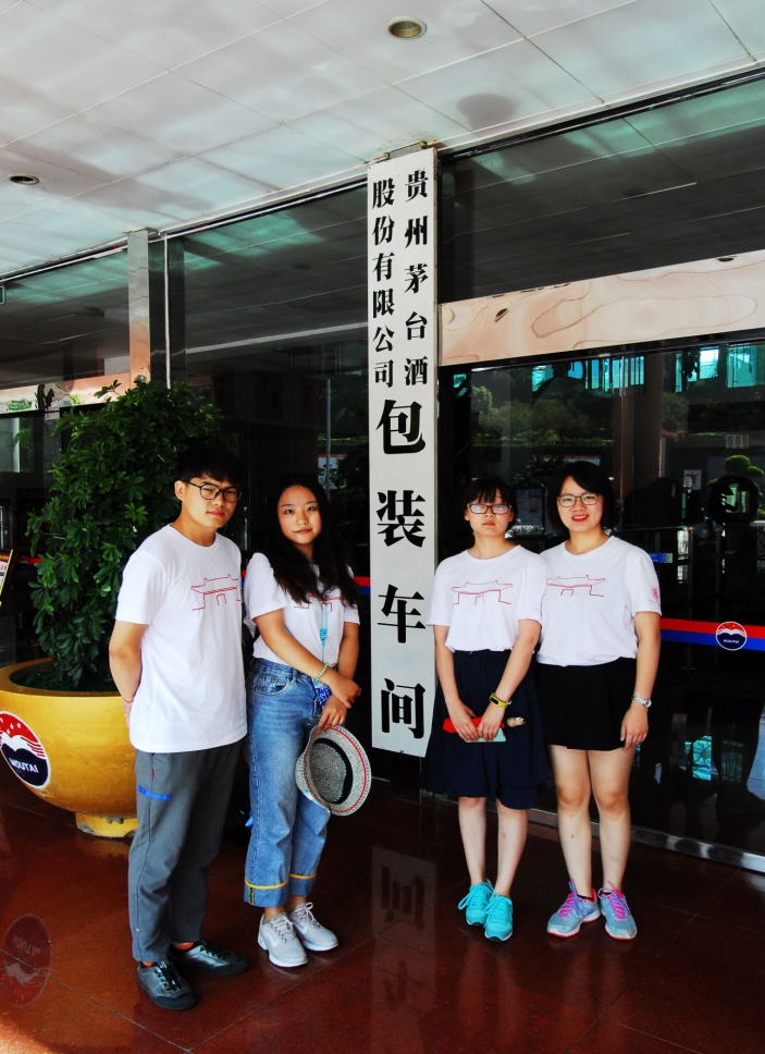 7月17日上午实践团成员来到了沿赤水河向上游而建的茅台集团,在龙薇运校友的带领下,实践团成员首先参观了包装车间,茅台酒的整个包装环节基本由人工完成,工人大部分为学历不高的当地人。人工包装不仅不如机器包装精密,还会大大提高成本,但茅台集团厚重的社会责任感,让他们更愿意来造福当地百姓。实践团成员们都为茅台集团的担当和奉献精神感动。