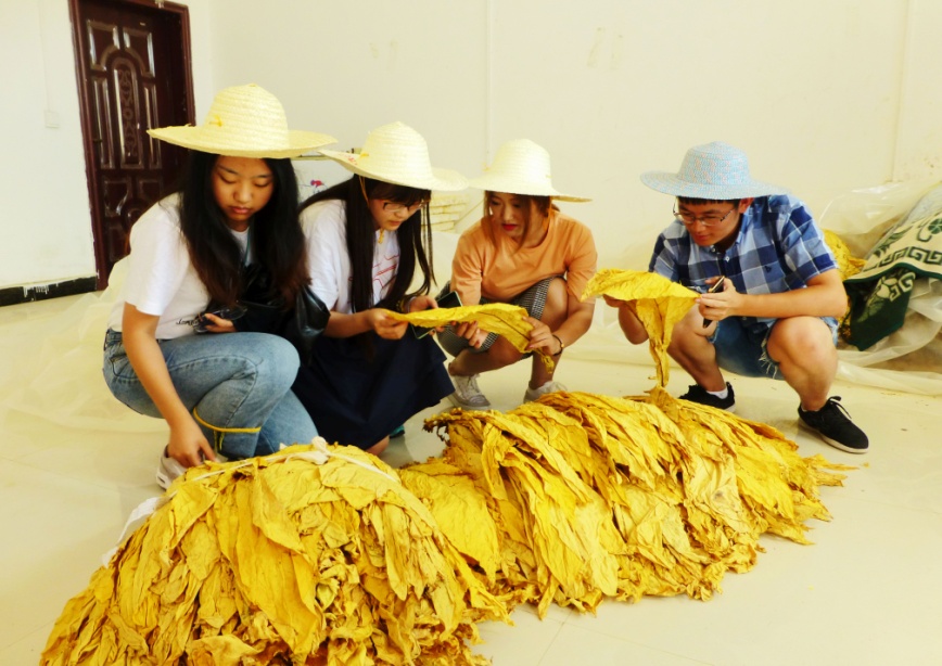 7月18日上午,农生学院暑期就业实践团与湄潭复烤厂开展了“2018年中华之巅”党建联建活动。党建活动在上海烟草集团采购中心陈健校友的欢迎词中拉开序幕,随后湄潭复烤厂厂长江家洪介绍了中国烟草的现状,中国烟草98.8%的高税率对整个国家的经济稳定和发展具有十分重要的意义。同学们听完介绍,表示对烟草行业有了新的认知。最后,陈健校友组织大家参观了烟草复烤车间,了解复烤工艺。下午,在陈健校友及复烤厂领导的陪同下,实践团成员参观了烟草种植及初烤基地。一个种植烟草30年的烟农激动地表示,烟草培养出了他们家的五个大学生,他很感谢国家和政府给予的机会。
