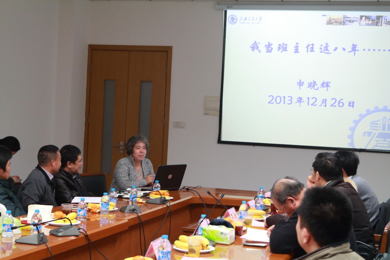 接着,院学工办主任陆小毛宣读了2013年优秀班主任名单,蒋秀明、王伟明、周培、谢立平、张逸阳分别为殷杉、赵琦等12位班主任颁发奖状。此外,为进一步推广优秀班主任的管理经验,搭建班主任沟通交流的桥梁,获奖的优秀班主任代表相继发言。13级食品科学与工程系班主任史海明从学生帮困工作、心理疏导工作、个人规划发展和科技创新工作等方面表述了自己的工作心得;13级动物生物技术系班主任杨志彪则详细讲述了自己做班主任以来与同学们以及家长之间的互动、交流,他丰富的工作内容给场所有老师留下了深刻的印象;专业硕士班班主任申晓辉向大家分享了8年的班主任工作经验。
