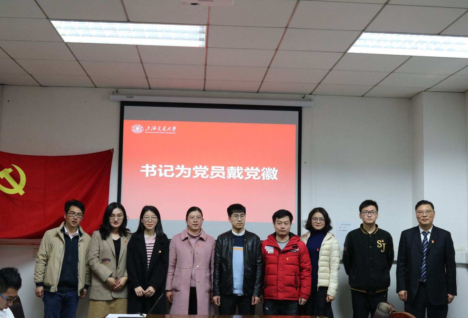 宣誓完毕,周培书记和龚强书记为毕业生党员佩戴党徽。党徽是党的象征和标志,时刻提醒毕业生党员勇于亮明党员身份、积极展示党员形象、当仁不让承担起党员责任。