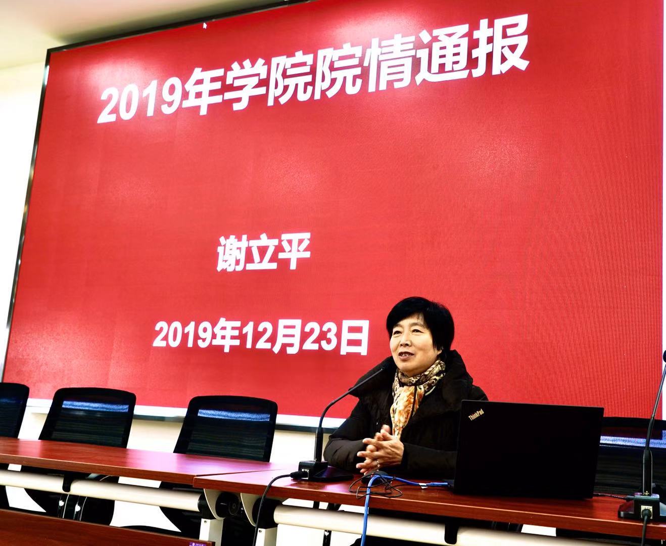谢立平首先转达了院党委书记周培书记对退休教工的亲切问候,预祝大家新年愉快。谢立平向大会做院情报告,总结了学院今年的发展情况。谢立平表示,今年是新中国成立70周年,学院处在甲子之年的关键发展阶段。019年院党政班子进行了建设调整提升了领导力,学院规模有了新的发展,空间载体扩大,学科建设进一步深入。学院通过分类发展和引育并举达到人才强院。科研经费达到1.2亿元,论文与专利再创佳绩。一带一路国际合作,新农村发展研究院与教授工作室等各类设置与方式,都激发了新的活力。2019年本硕博学生数达1034人。下半年开展的“不忘初心,牢记使命”党建主题教育激发了全体党员和师生的进取精神。未来学院将继续服务新农村发展,推进新农科建设。