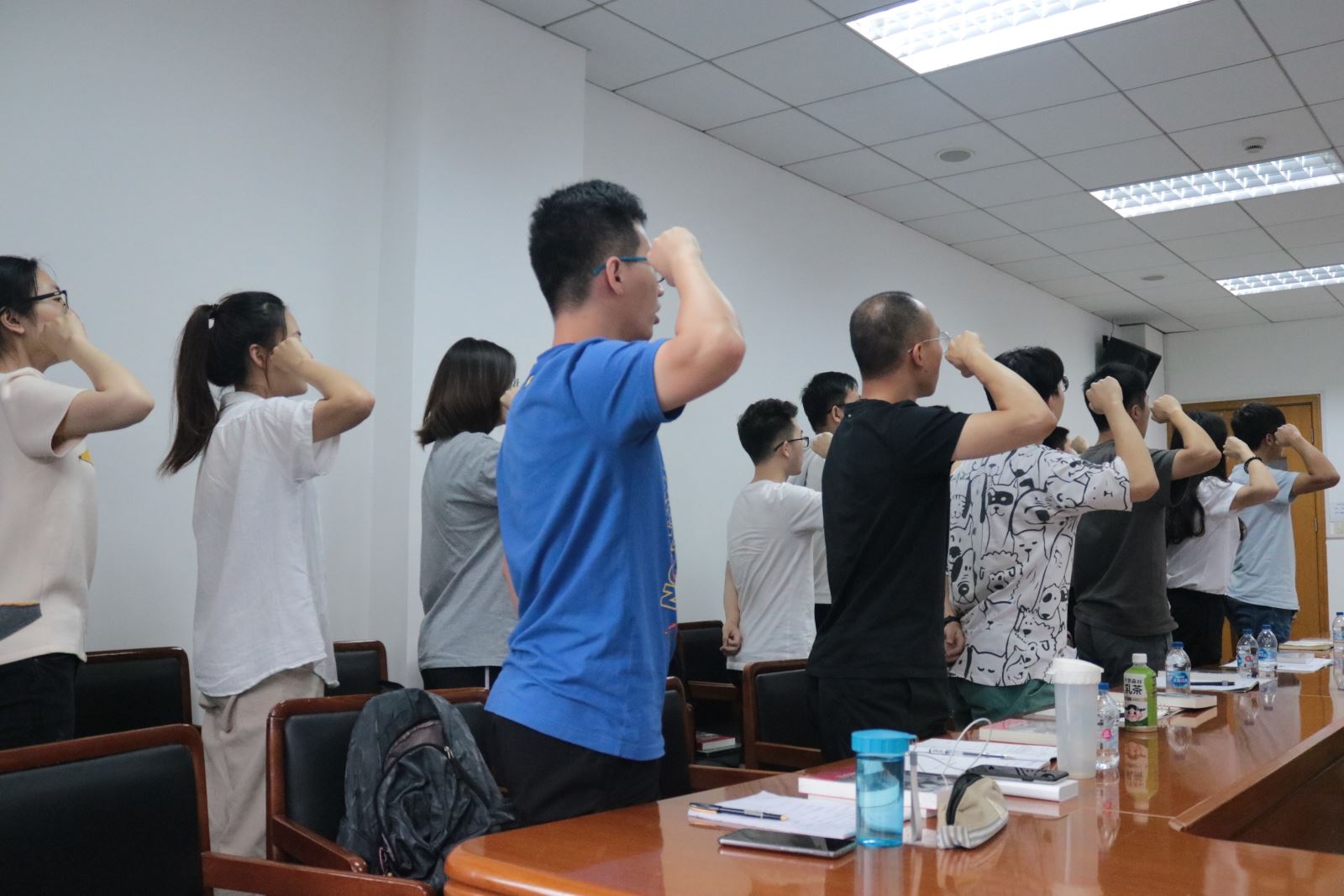 不忘初心,终得始终。全体毕业生党员起立,面向党旗,举起右拳,由黄丹阳同志领誓,重温入党誓词。希望各位不忘加入中国共产党时的激动与坚定,不忘入党时的庄严承诺,时刻警醒着自己作为一名共产党员的责任与使命。
