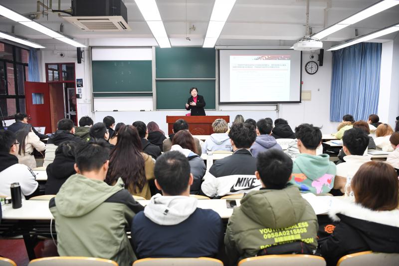 “习近平新时代中国特色社会主义思想是新时代中国共产党的思想旗帜,是国家社会生活和政治生活的根本指针,是当代中国的马列主义,指引着中国特色社会主义建设的新征程。”严胜雄用“时代之问”阐述了习近平新时代中国特色社会主义思想是顺应时代发展,在系统回答新时代坚持和发展什么样的中国特色社会主义、怎样坚持和发展中国特色社会主义的这个重大时代课题中创立的。随后,她从忠诚之答、成长之路和带头践行三个方面讲述了习近平新时代中国特色社会主义思想的创立。“我将无我,不负人民”展现了习近平总书记伟大的赤子情怀和矢志不渝为党和人民事业不懈奋斗的精神风貌;“中国共产党没有自己的特殊利益,一切为了人民”“江山就是人民,人民就是江山”,这些“忠诚之答”是习近平新时代中国特色社会主义思想的根基。习近平总书记是在浓郁的革命氛围和红色基因传承中成长,在艰难曲折困境中磨砺,在极其丰富的革命实践中锤炼,在复杂的国际斗争中锻造,在新的伟大斗争中确立起来的党中央的核心、全党的核心;从人民中来到人民中去,懂基层、懂人民、懂农民,问计于民,说的话知人民,人民爱听,与人民同呼吸,共命运,心连心,“成长之路”奠定了习近平新时代中国特色社会主义思想创立的实践之行和理论源泉。习近平总书记带头践行“不忘初心、牢记使命”,带领全党全国人民解决“三农”问题,推进“三农”伟大事业,发展党的“三农”理论,指导“三农”工作不断向前发展。在极不平凡的2020年,面对世界百年未有之大变局,习近平总书记带领全党全国人民,迎惊心动魄的风云突变,战惊涛骇浪中前行,推构建人类命运共同体。习近平总书记带领全党全国人民,豪情万丈中砥砺前行、战天斗地的故事,引起了在场同学的强烈反响,“他都这么拼,你还有什么理由不努力”,同学们纷纷表示,社会主义是干出来的,新时代是奋斗出来的,幸福生活也是努力出来的。