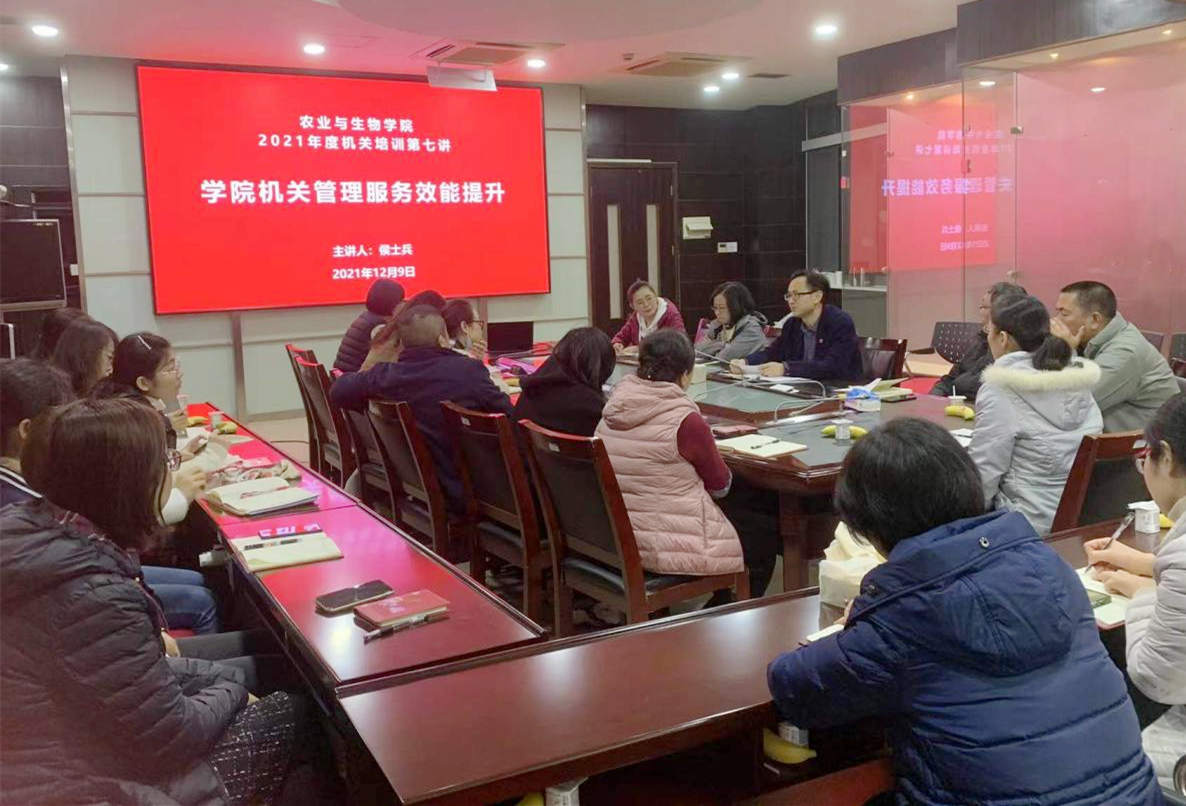 12月9日,农生学院2021年度机关培训第七讲开讲,院党委书记侯士兵作“学院机关管理服务效能提升”专题报告,为学院行政机关教职工带来一场生动的工作效能提升课。