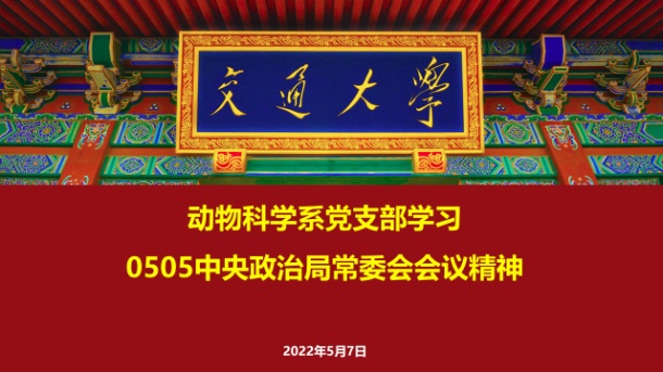 5月6日,农业与生物学院党委认真学习了中共中央政治局常务委员会会议精神和上海市委常委扩大会议精神,第一时间明确工作要求并进行了工作部署。院党委研究制定了《农业与生物学院落实5月5日中央政治局和市委常委扩大会议主要举措》,要求所有教工党支部充分发挥战斗堡垒作用,认真传达会议精神;要求每个党员充分发挥先锋模范作用,人人当好宣讲员和示范者;要求每个支部和党员时刻牢记为群众办实事,当好贴心暖心人。