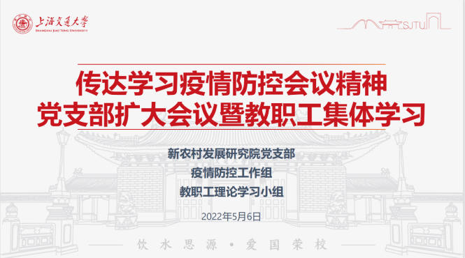 5月6日-7日,学院所有教工党支部以支部扩大会议形式(线上),将习近平总书记重要讲话精神和市委相关要求传达到每一个教职工。号召全体党员切实把会议精神落实到抗疫行动中,积极发声,在社区、网络中宣讲好疫情防控方针政策;继续冲锋在前,积极参加志愿者工作;主动排摸师生困难,在社区内结对子,关心关爱社区内的退休及独居教职工;定期开展抗疫工作交流,汇集抗疫点滴,暖人心、聚人心。