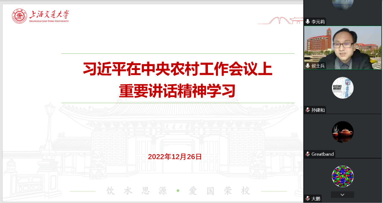 12月26日,农业与生物学院党委理论学习中心组召开线上学习会,专题学习习近平在中央农村工作会议上重要讲话精神,院党委书记侯士兵主持会议。