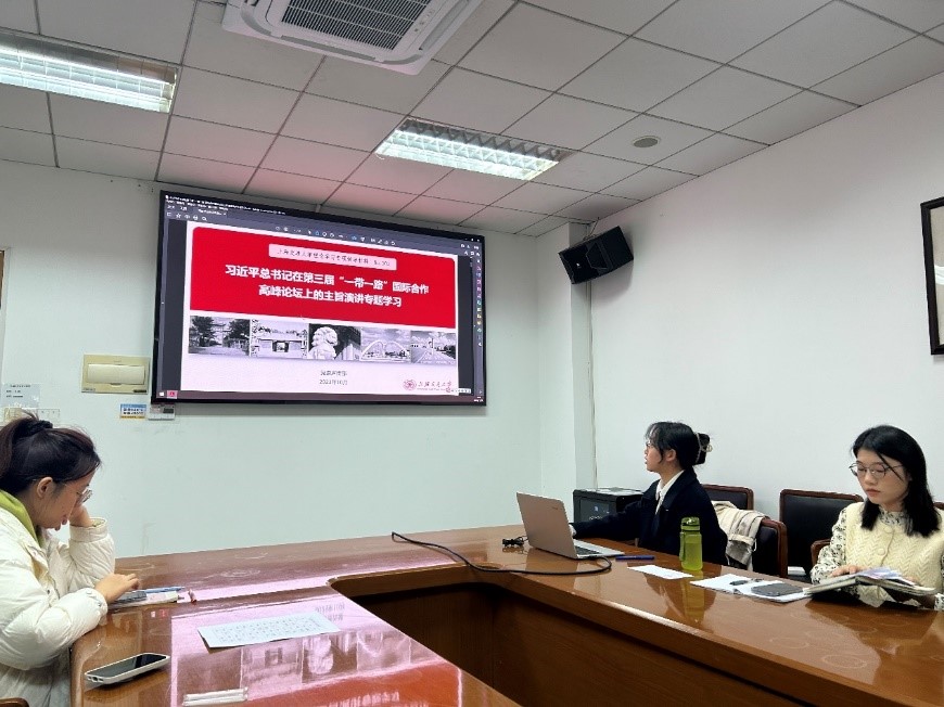 选举结束后,新一届党支部书记王靖雅同志带领全体参会人员学习了习近平总书记在第三届“一带一路”国际合作高峰论坛上的主旨演讲。习近平指出,今年是我提出共建“一带一路”倡议10周年。提出这一倡议的初心,是借鉴古丝绸之路,以互联互通为主线,同各国加强政策沟通、设施联通、贸易畅通、资金融通、民心相通,为世界经济增长注入新动能,为全球发展开辟新空间,为国际经济合作打造新平台。
