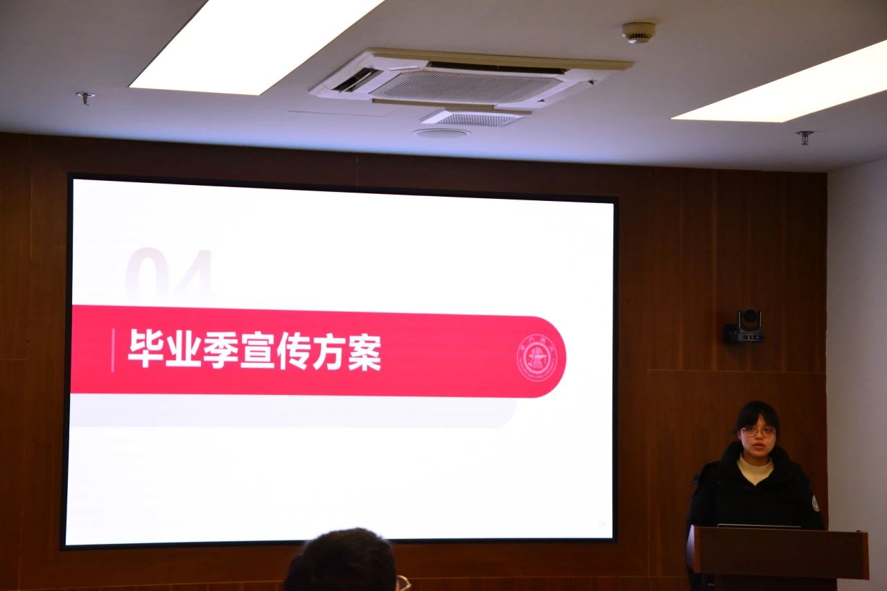 随后,党建研究会主席李亿宁、兰逸聿分别就学院党员培训教育、毕业季宣传方案进行汇报。
