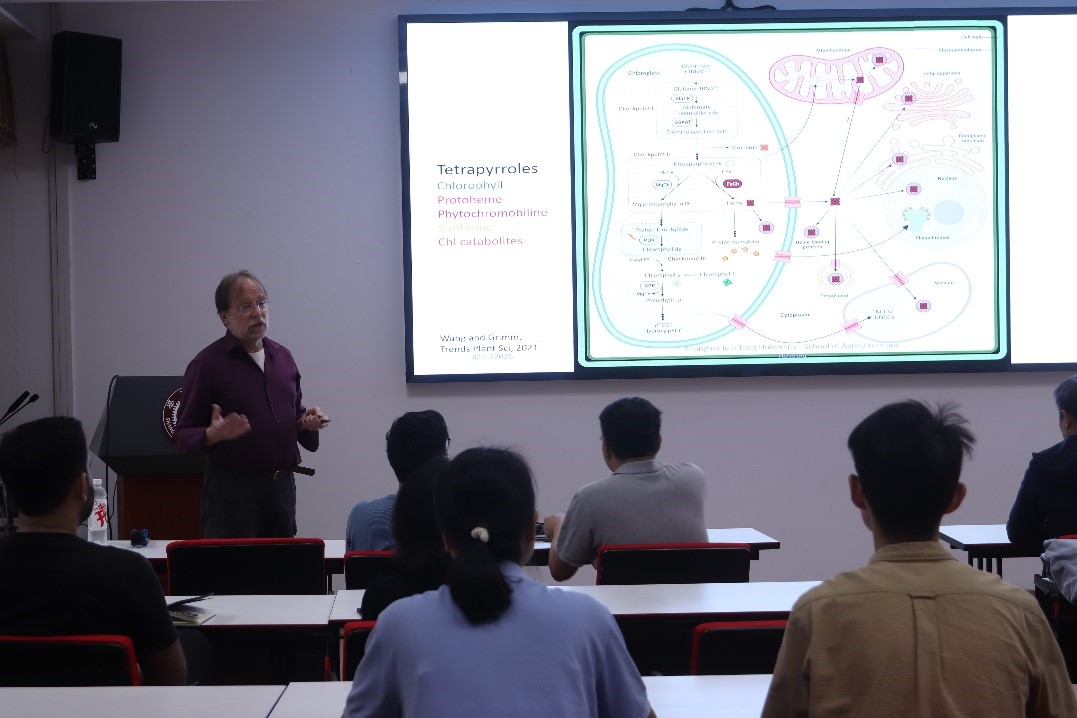 这一方法能够追踪自由血红素的分布和动态,并提供相关的移动信息。这些血红素传感器的应用,将为探索和验证植物细胞中自由血红素的重要性提供机会,有助于识别改变自由血红素亚细胞分配的突变体,以及揭示血红素作为信号分子的作用机制。在互动环节,学院师生反响热烈、积极提问,Bernhard Grimm教授就传感器技术的灵敏度、跨物种适用性等问题给出了精辟的解答。