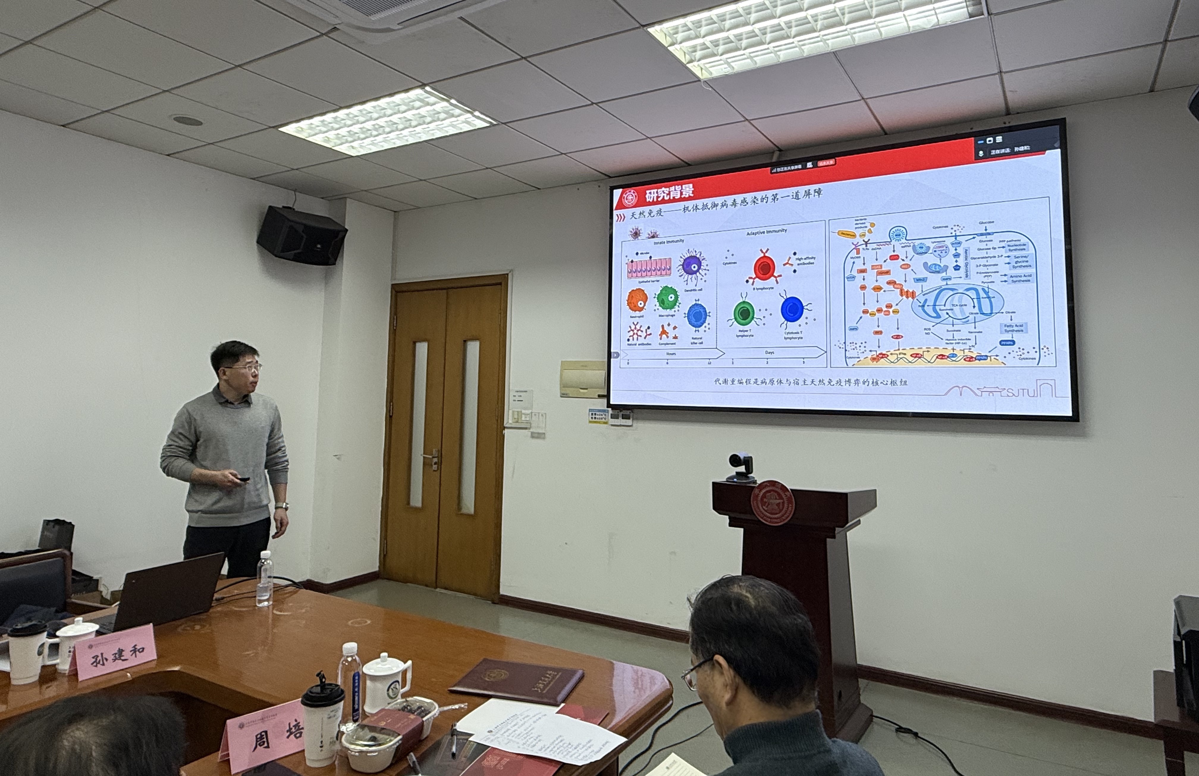 124日上午,上海市兽医生物技术重点实验室(以下简称重点实验室)2025年学术委员会会议在上海交大农业与生物学院召开。重点实验室学术委员会主任中国农业大学沈建忠院士,副主任中科院亚热带农业生态研究所印遇龙院士、中国农业科学院上海兽医研究所童光志研究员,华中农业大学金梅林院士,中国农业科学院哈尔滨兽医研究所步志高研究员,扬州大学焦新安教授,浙江大学潘玉春教授,四川农业大学程安春教授,南京农业大学苗晋锋教授,上海交通大学农业与生物学院周培教授、丁铲教授等学术委员会委员,上海市科委实验室建设发展处处长仲东亭,上海交通大学科研院前沿创新研究院副院长金晶,农业与生物学院党委书记侯士兵、副院长李新红、重点实验室常务副主任孙建和教授以及重点实验室PI代表等三十多人出席了本次年会,部分委员和领导采用线上形式参加。会议由李新红主持,沈建忠主持了学术委员会会议。