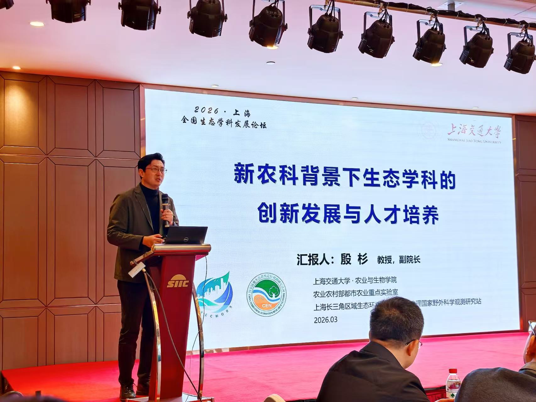 会上,殷杉以《新农科背景下生态学科的创新发展与人才培养》为题,系统介绍了上海交通大学生态学科的建设成果。作为2003年获批的一级学科,上海交大生态学科立足“都市农业和城乡环境生态”的特色定位,依托农业与生物学院深厚的农科底蕴,形成了鲜明的农业生态研究特色。从作物对全球变化的生理机制,到城乡生态系统监测与服务评估,再到土壤、水体等生态系统修复,构建了完整的从理论到应用的学科发展链条。